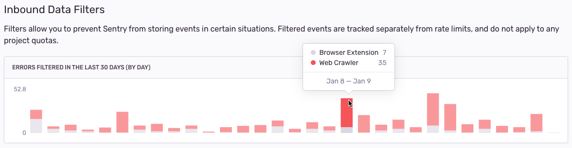 You can look at your events in aggregate in the "Usage Stats" tab of Stats. This information will help you answer key questions about the breakdown of your incoming events or which projects are consuming your quota. The answers to these questions can help you figure out where you need to do further fine-tuning of your SDK filters and configuration.
